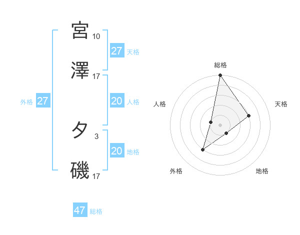 宮澤 夕磯さんを姓名の画数から五運を鑑定