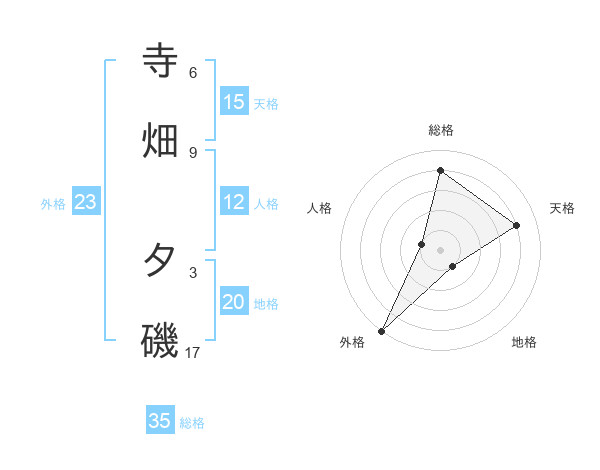 寺畑 夕磯さんを姓名の画数から五運を鑑定