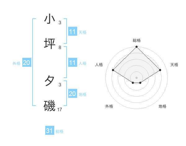 小坪 夕磯さんの地格は20画の1点!