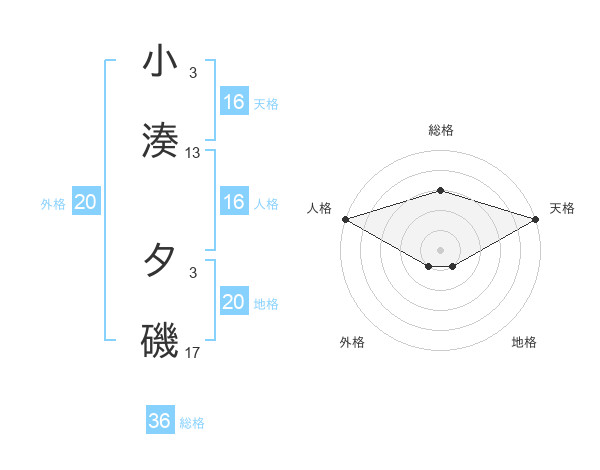 小湊 夕磯さんを姓名の画数から五運を鑑定
