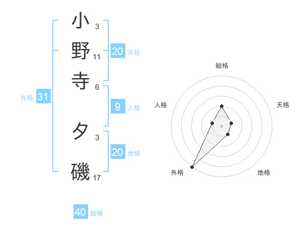 小野寺 夕磯さんを姓名の画数から五運を鑑定