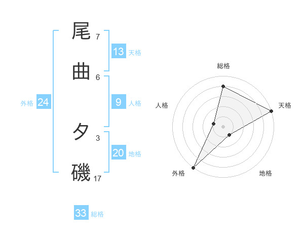 尾曲 夕磯さんの総格は33画の4点!
