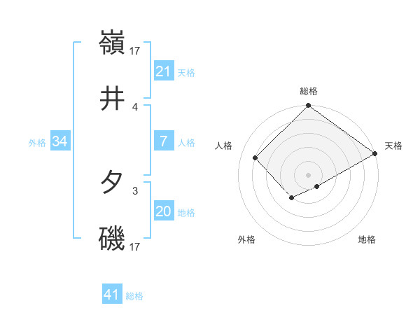 嶺井 夕磯さんの天格は21画の5点!