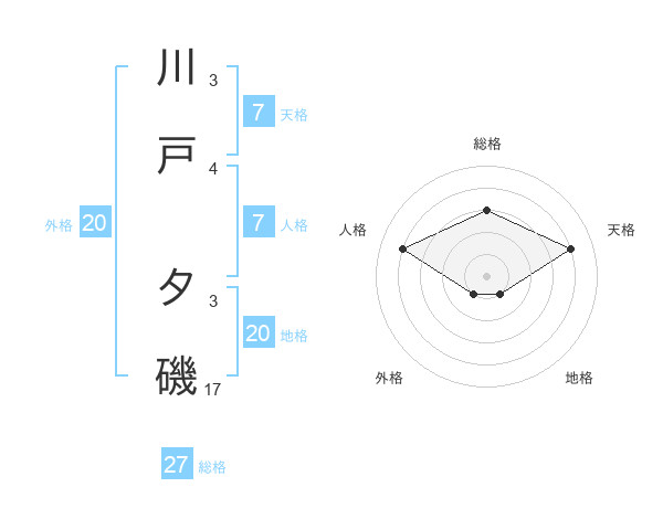 川戸 夕磯さんの総格は27画の3点!