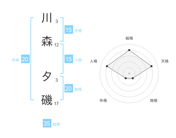 川森 夕磯さんの総格は35画の4点!
