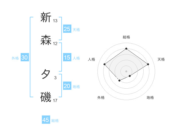 新森 夕磯さんの総格は45画の4点!