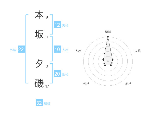 本坂 夕磯さんの総格は32画の5点!