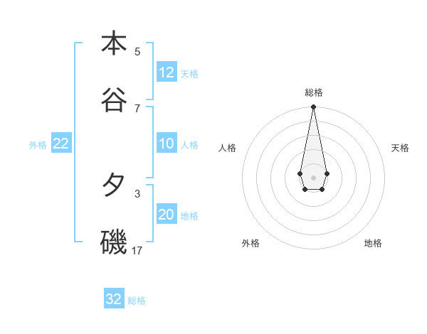 本谷 夕磯さんを姓名の画数から五運を鑑定