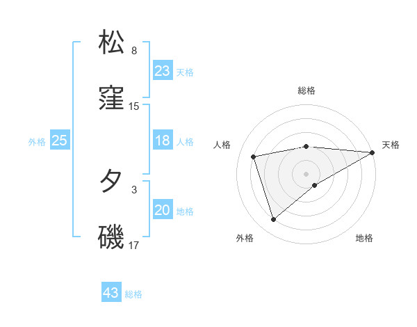松窪 夕磯さんを姓名の画数から五運を鑑定