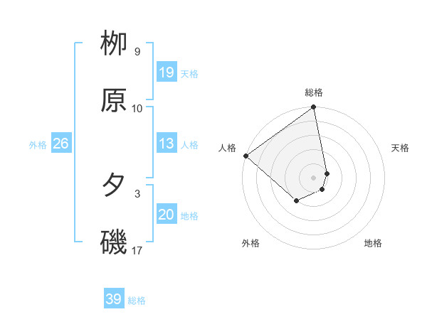 栁原 夕磯さんを姓名の画数から五運を鑑定