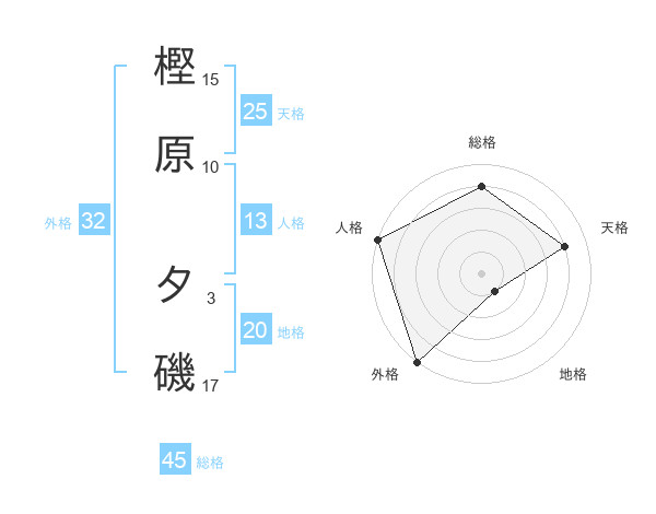 樫原 夕磯さんを姓名の画数から五運を鑑定