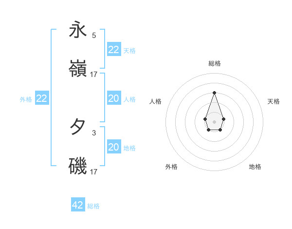 永嶺 夕磯さんの総格は42画の3点!