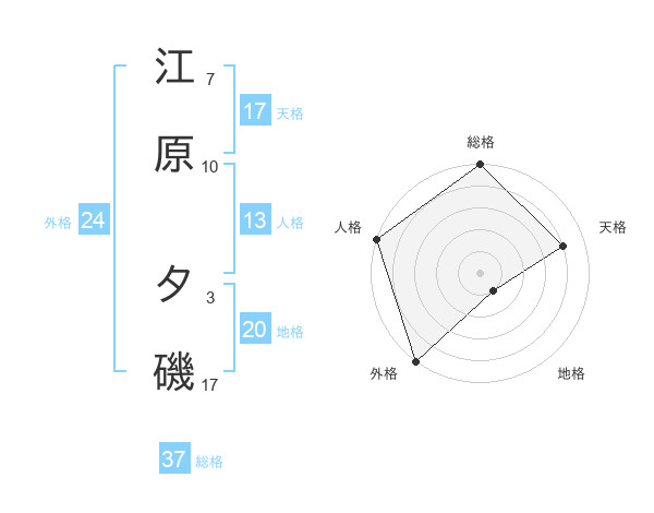 江原 夕磯さんを姓名の画数から五運を鑑定