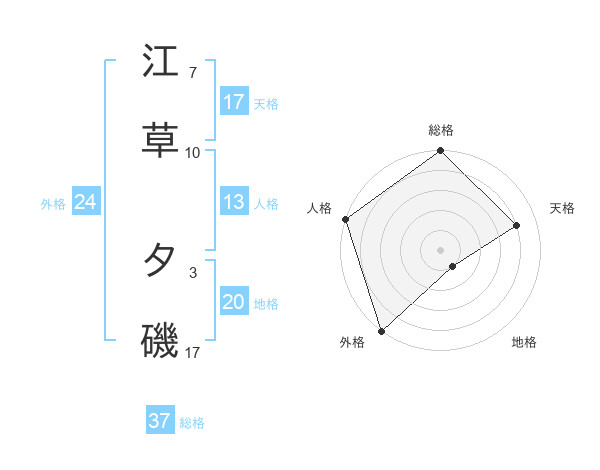 江草 夕磯さんを姓名の画数から五運を鑑定