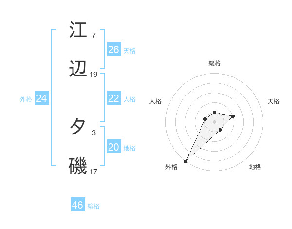 江辺 夕磯さんの外格は24画の5点!