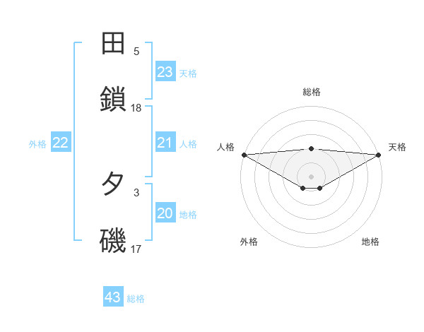 田鎖 夕磯さんの外格は22画の1点!