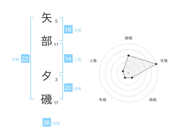 矢部 夕磯さんの外格は22画の1点!