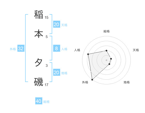 稲本 夕磯さんの外格は32画の5点!