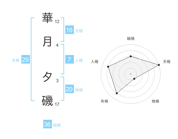 華月 夕磯さんを姓名の画数から五運を鑑定