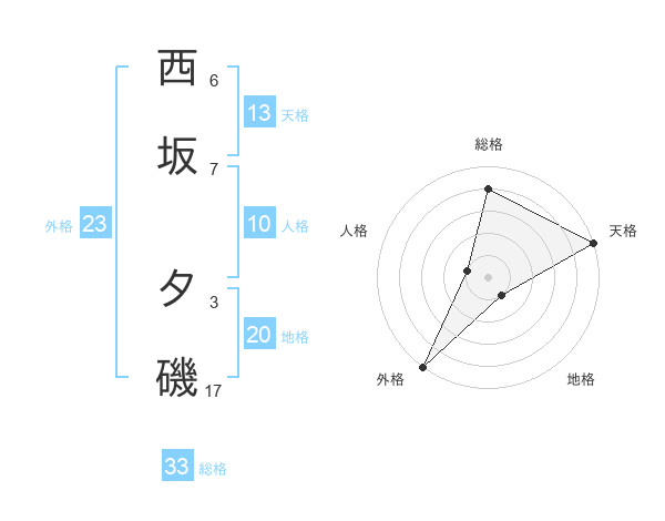 西坂 夕磯さんを姓名の画数から五運を鑑定