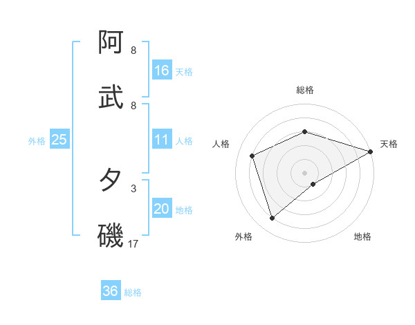 阿武 夕磯さんの天格は16画の5点!