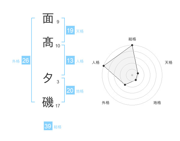 面髙 夕磯さんを姓名の画数から五運を鑑定