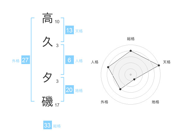 高久 夕磯さんの総格は33画の4点!