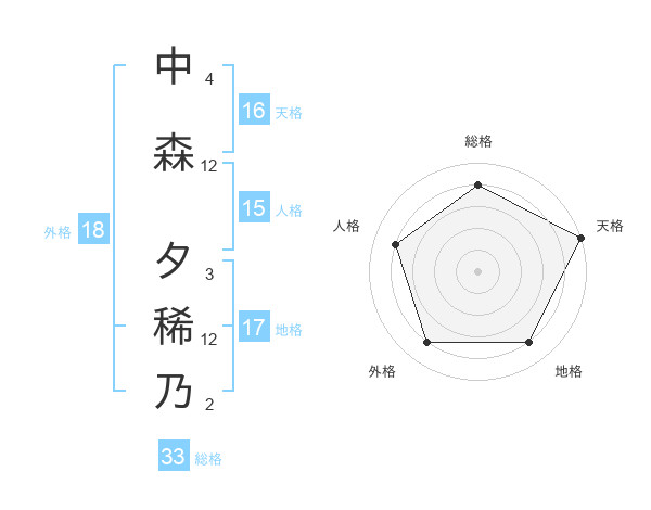 中森 夕稀乃さんを姓名の画数から五運を鑑定