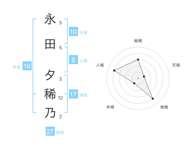 永田 夕稀乃さんを姓名の画数から五運を鑑定