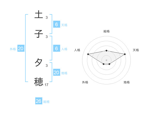 土子 夕穂さんの総格は26画の2点!