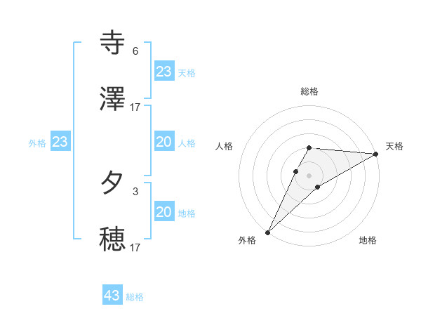 寺澤 夕穂さんの外格は23画の5点!