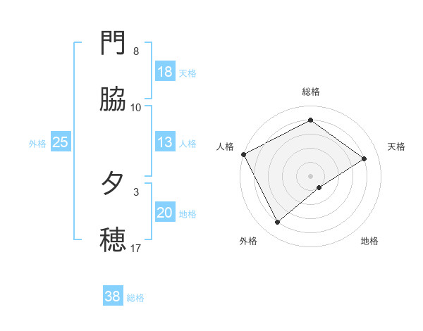 門脇 夕穂さんの総格は38画の4点!