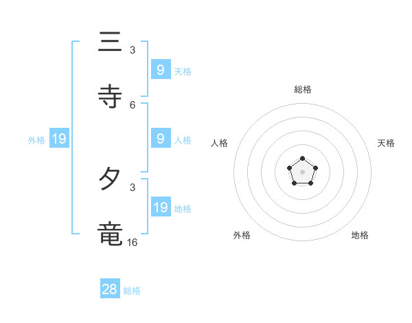 三寺 夕竜さんの総格は28画の1点!