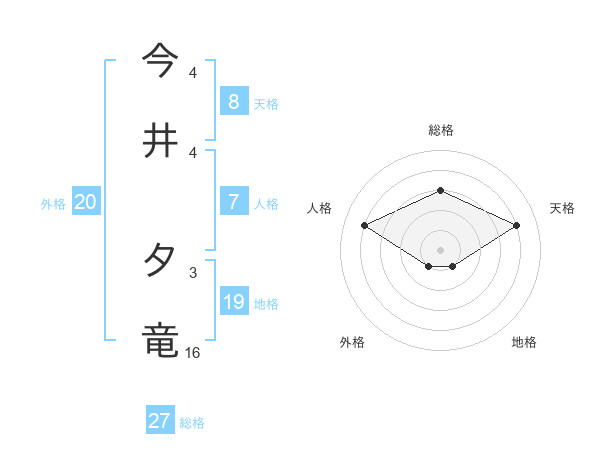 今井 夕竜さんの天格は8画の4点!