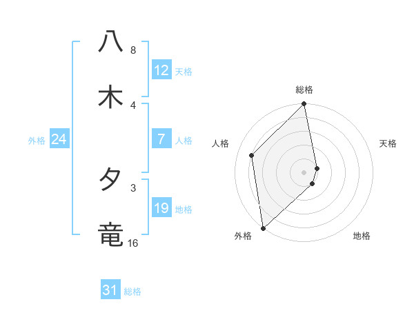 八木 夕竜さんを姓名の画数から五運を鑑定