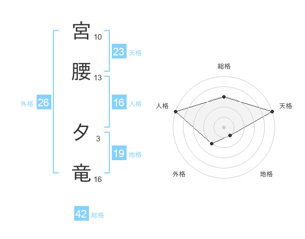 宮腰 夕竜さんの総格は42画の3点!