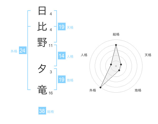 日比野 夕竜さんを姓名の画数から五運を鑑定