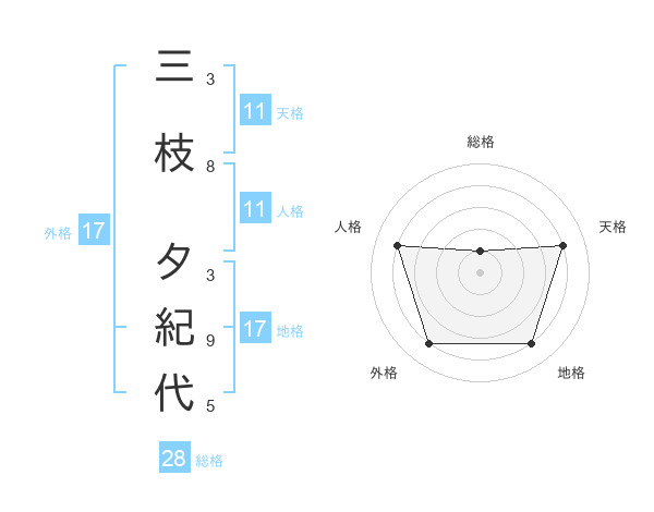 三枝 夕紀代さんを姓名の画数から五運を鑑定