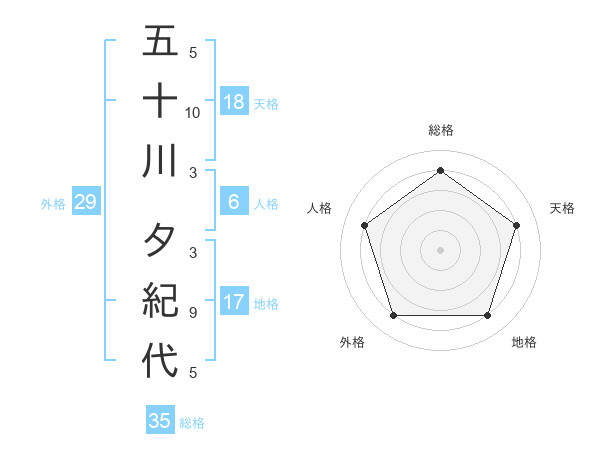 五十川 夕紀代さんを姓名の画数から五運を鑑定