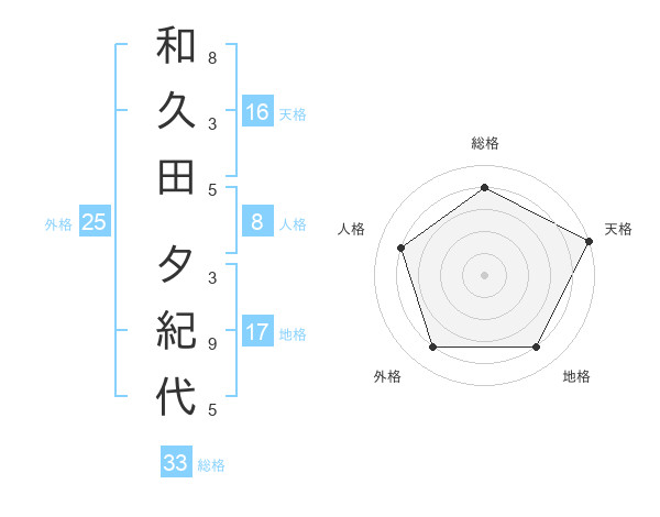 和久田 夕紀代さんを姓名の画数から五運を鑑定