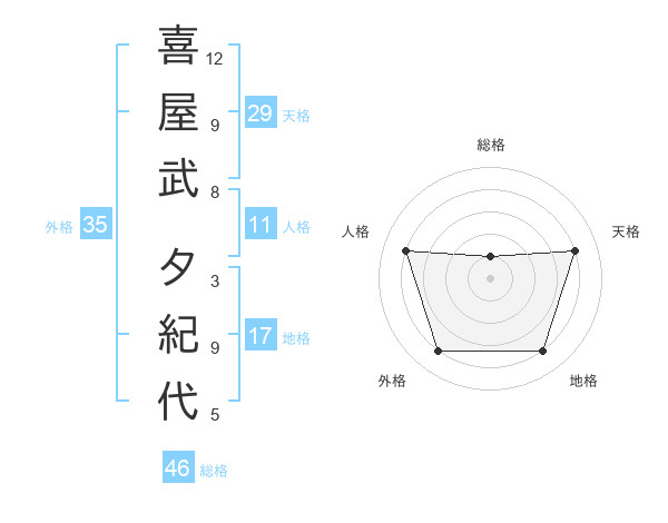 喜屋武 夕紀代さんを姓名の画数から五運を鑑定