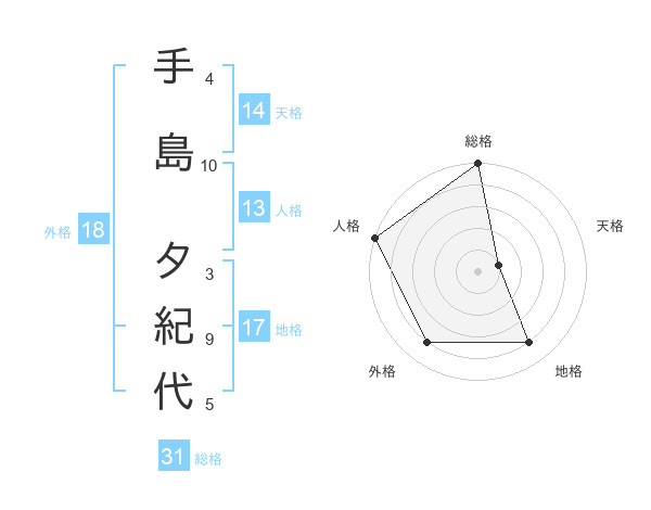 手島 夕紀代さんを姓名の画数から五運を鑑定