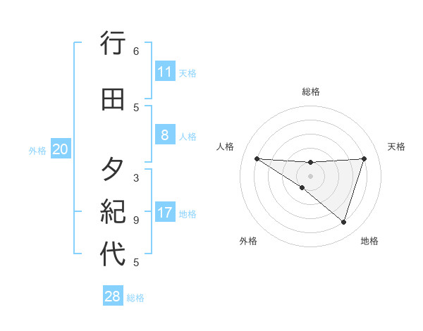 行田 夕紀代さんを姓名の画数から五運を鑑定
