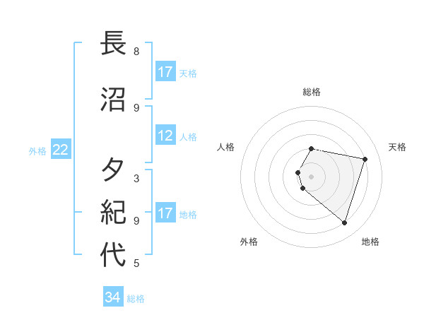 長沼 夕紀代さんを姓名の画数から五運を鑑定