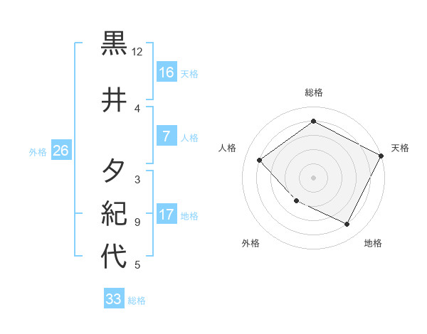 黒井 夕紀代さんを姓名の画数から五運を鑑定
