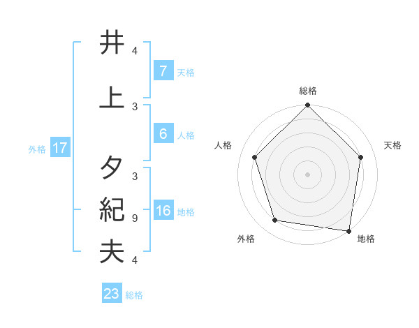 井上 夕紀夫さんの総格は23画の5点