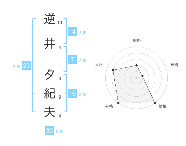 逆井 夕紀夫さんを姓名の画数から五運を鑑定