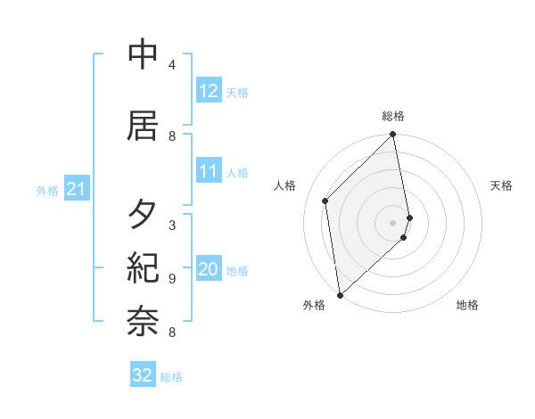 中居 夕紀奈さんを姓名の画数から五運を鑑定