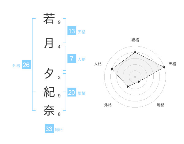 若月 夕紀奈さんを姓名の画数から五運を鑑定