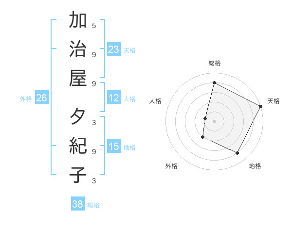 加治屋 夕紀子さんを姓名の画数から五運を鑑定